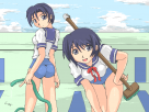 スク水セーラでお掃除中~ 最後の最後までバケツの有無に迷った。。。