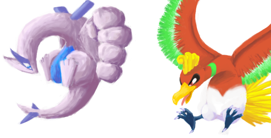 ふたりでルギアとホウオウかいてみた!